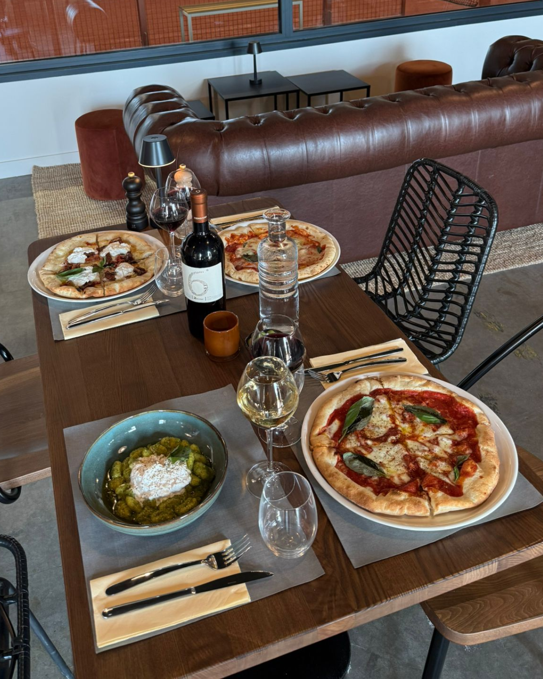 Place à une ambiance plus décontractée, avec une carte dédiée aux pizzas et planches à partager, idéales pour un moment entre amis ou en famille.